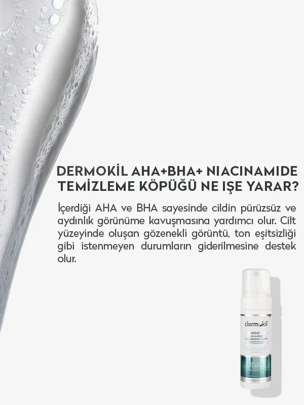AHA ve BHA içeriği sayesinde cildin üst tabakasındaki ölü deri hücrelerini nazikçe arındırarak daha pürüzsüz, taze ve aydınlık bir cilt görünümünün oluşmasına yardımcı olur. Gözeneklerin derinlemesine temizlenmesini desteklerken cildin nefes almasına katkı sağlar.