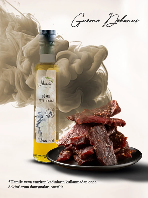 Duman aromasıyla zenginleştirilmiş özel bir zeytinyağıdır. Barbekü marinasyonları, kırmızı etler ve sebze ızgaralarında kullanılan bu yağ, yemeklerinize derin ve karakteristik bir tat katar.