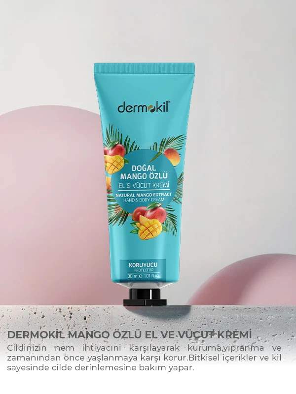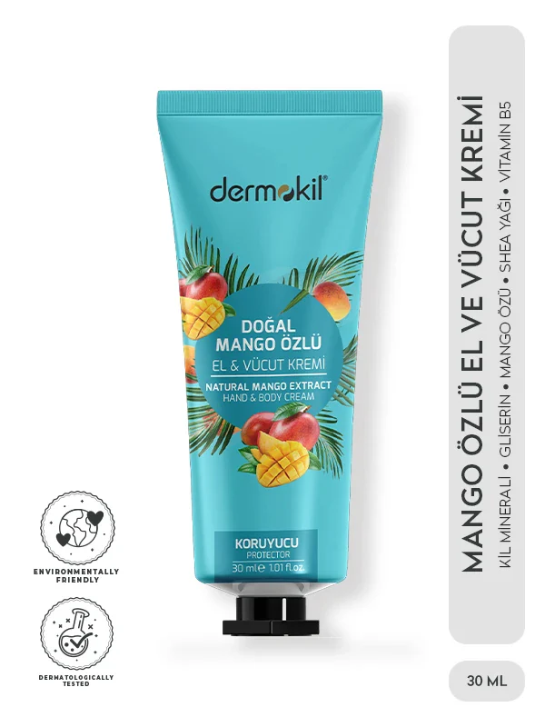 Mango Özlü Koruycu Etkili El ve Vücut Kremi 30 ml, cilde yoğun nem ve besleyici bakım sağlamak amacıyla özel olarak formüle edilmiştir. İçeriğindeki mango özü, cildin nem ihtiyacını karşılamaya yardımcı olurken kuruluk hissinin azalmasına destek olur.